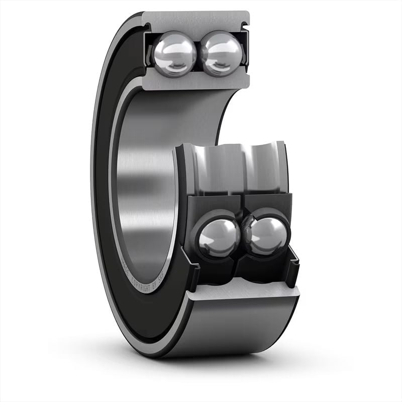 Her iki tarafında keçe bulunan çift sıralı eğik bilyalı rulmanlar, daha az eksenel alan gerektirirken sırt sırta düzende bir çift tek sıralı eğik bilyalı rulmana karşılık gelir. Sızdırmazlık uygulamasına bağlı olarak, yüksek hızlarda çalışabilirler ve her iki yönde de büyük eksenel kuvvetleri desteklemek için sabit bilyalı rulmanlardan daha uygundurlar.